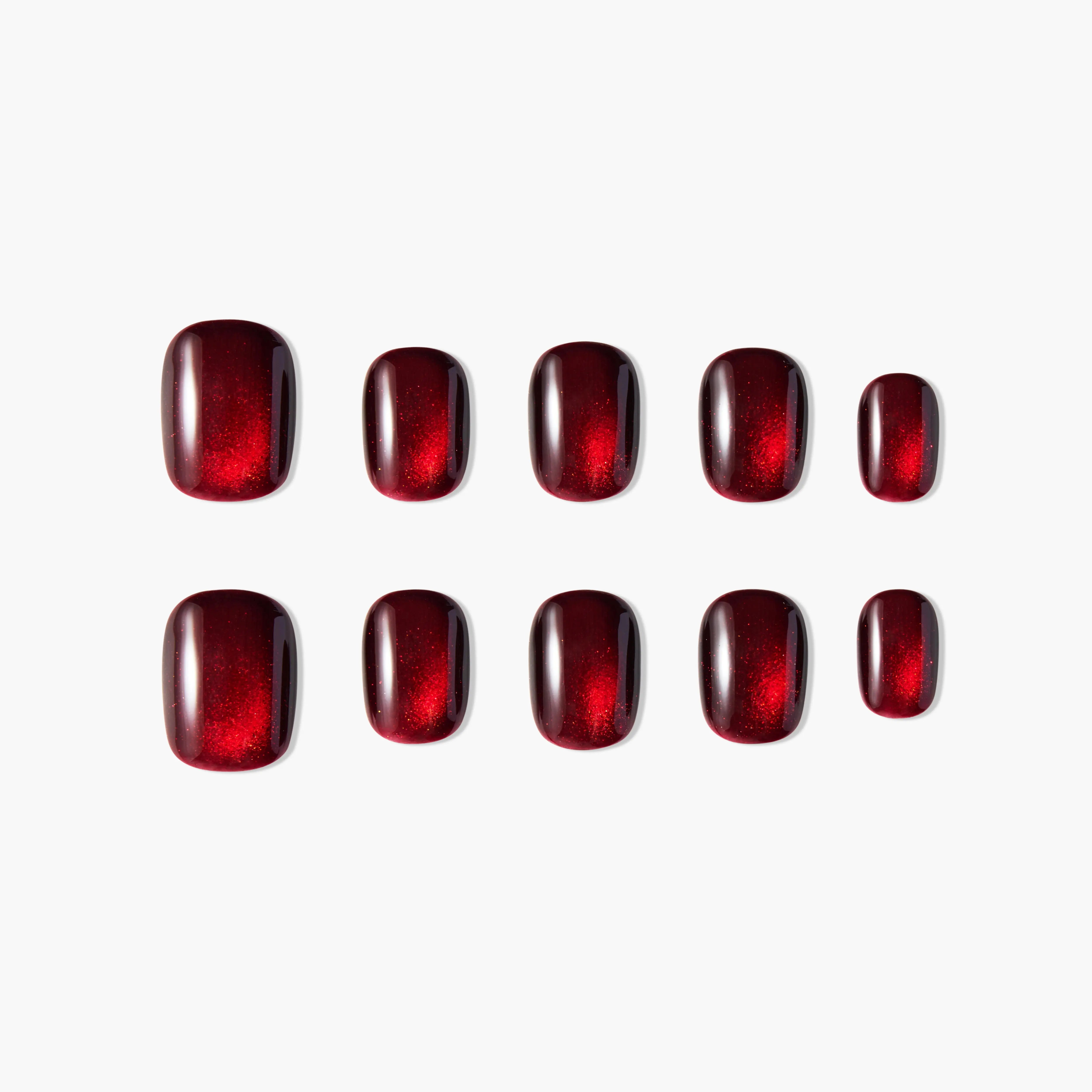 Les ongles Crimson Galaxy présentent une teinte rouge riche et profonde avec un effet œil de chat captivant, rappelant des braises incandescentes dans un décor cosmique. Ces ongles dégagent luxe et audace, les rendant parfaits pour les événements en soirée ou lorsque vous souhaitez faire une déclaration sophistiquée.
