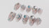 Arctic Ocean Sparkle features a glittering silver-gray base adorned with blue star-shaped gems and oversized round rhinestones, reminiscent of sparkling stars in a frozen sea. The design incorporates pearls and irregular crystal accents, evoking the elegance and chill of icy landscapes. Perfect for parties, galas, or winter festivities, this nail set ensures your fingertips shine enchantingly under any light.