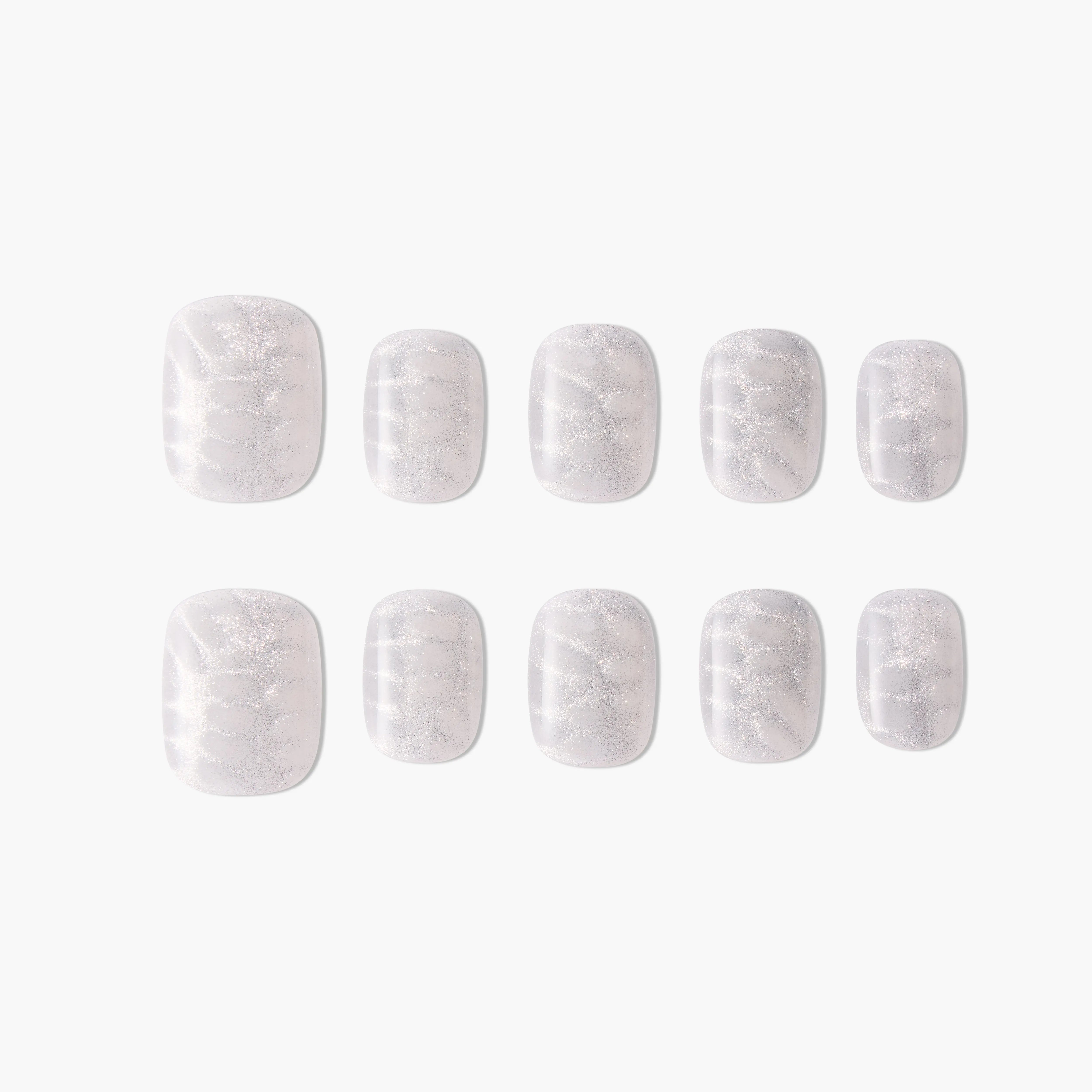 Indulge in the ethereal beauty of "Cloudy Silver Dream". With delicate silver gradients and a touch of glitter, this design embodies minimalism and elegance. Perfect for both everyday wear and special events, it exudes a refreshing aura reminiscent of a peaceful morning sunrise.