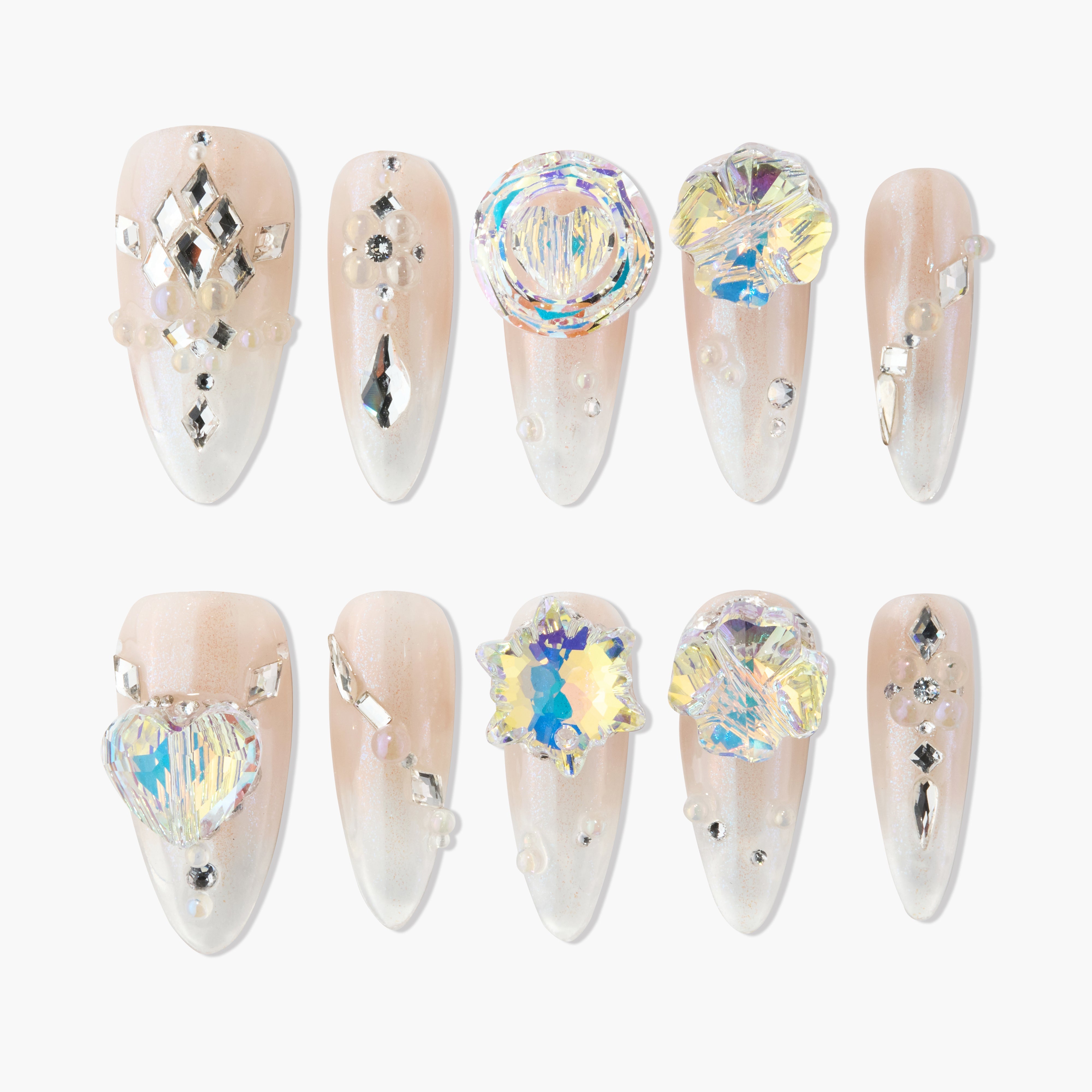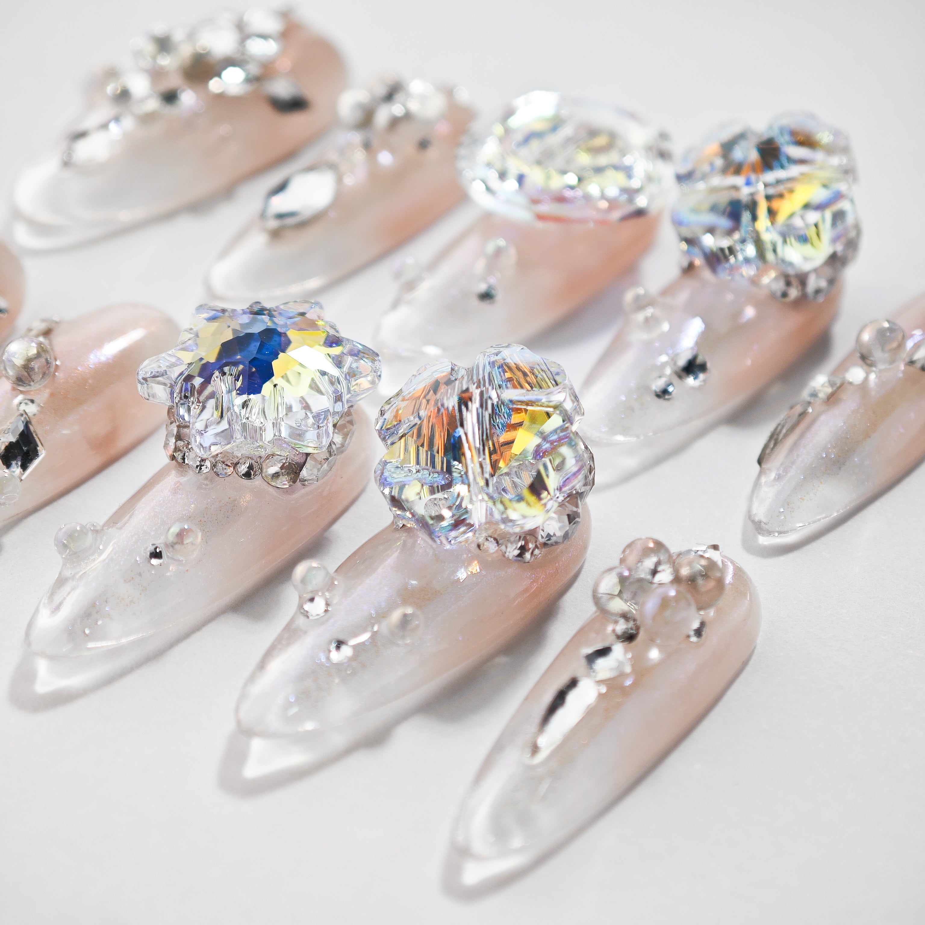 Discover Emily’s Nail’s Crystal Blossom press-on nails, featuring radiant crystals and delicate flower designs for a sparkling, elegant look.