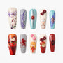 Handmade press-on nails featuring EVA-inspired designs—salon-quality and ready in 10 minutes.