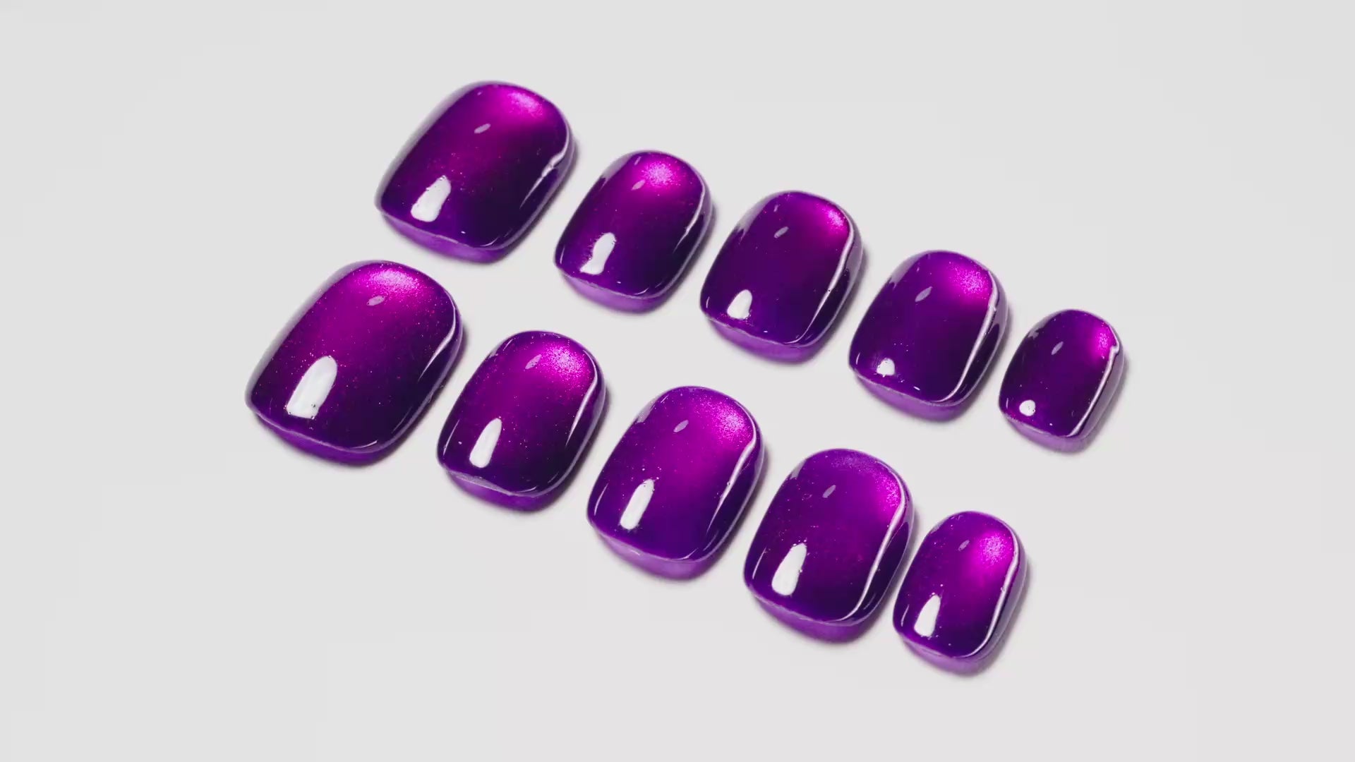 Galaxy Purple Radiance nail set embodies the mystery and allure of a starlit night sky. With deep purple hues enhanced by sparkling accents, these nails create a cosmic, magnetic effect. Perfect for adding a bold yet elegant statement to your look, this design shines brightest under dim lighting or evening occasions.