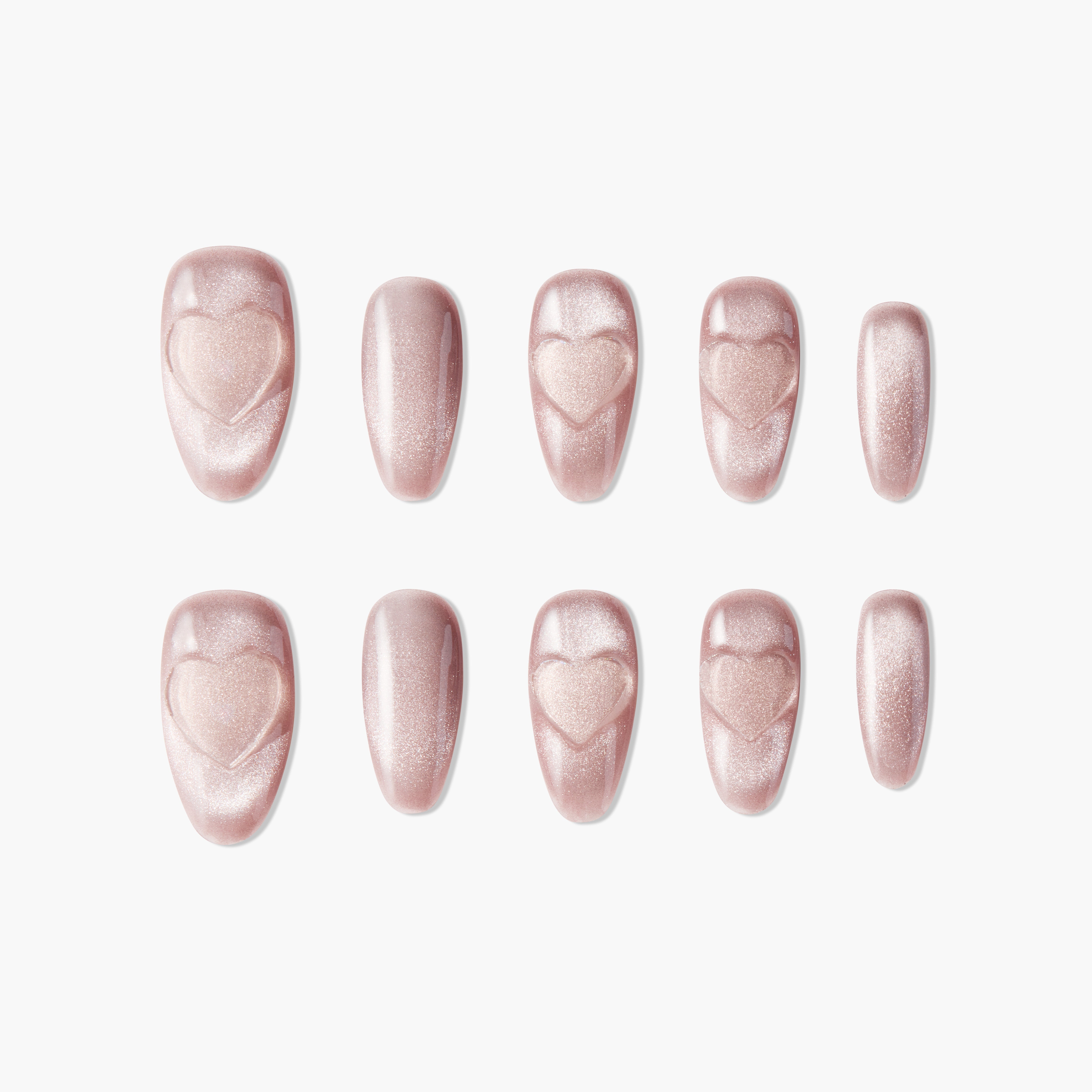 Golden Heart Glow features a soft champagne shimmer base with elegantly embossed heart motifs that radiate warmth and sophistication. The minimalist design highlights the beauty of simplicity while exuding a subtle charm. Perfect for romantic occasions, weddings, or adding a delicate touch of elegance to your daily style, this nail set captures timeless affection with a golden glow.