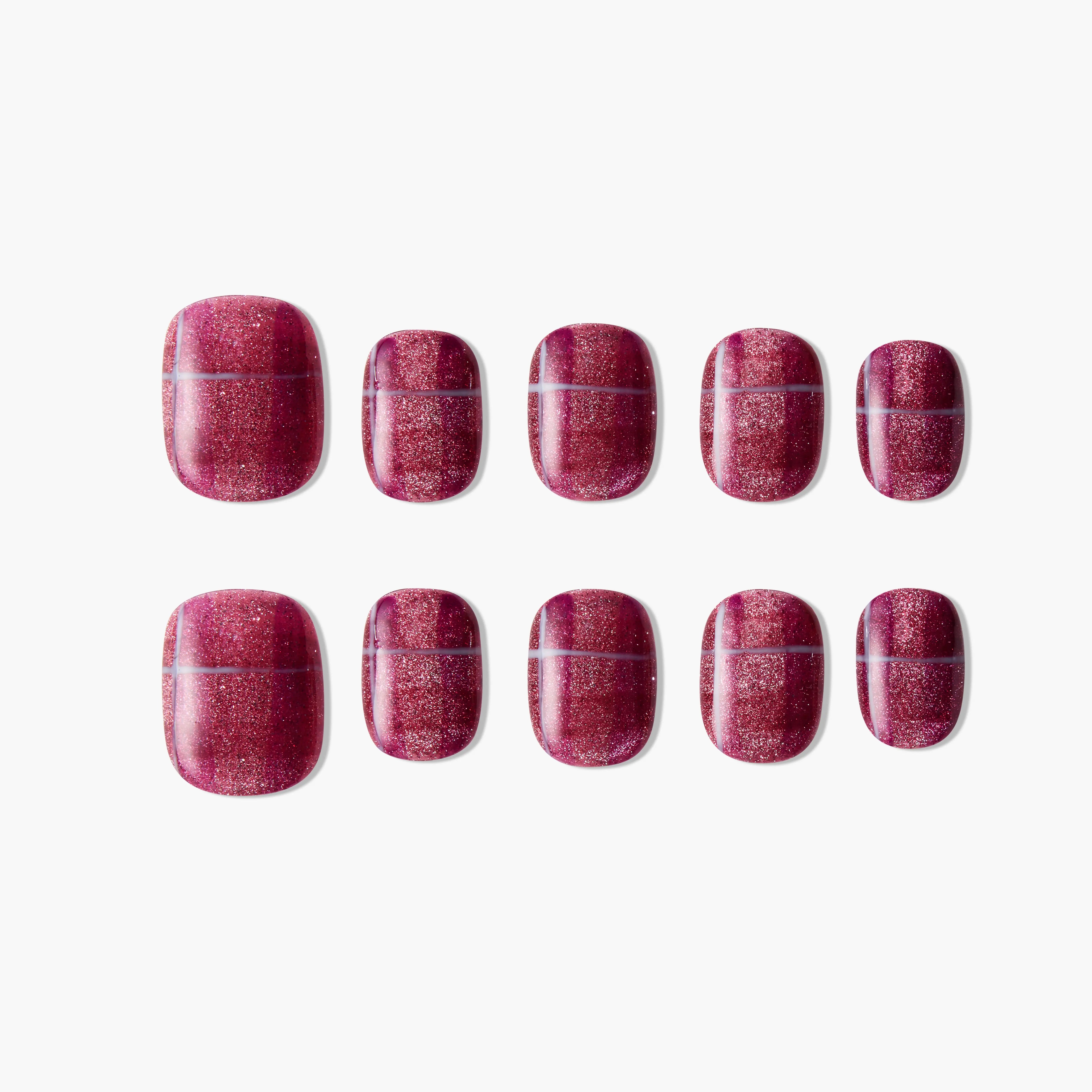 The Starlight Purple Glow Nail Set features a deep purple-red gradient with shimmering glitter, creating a dazzling starry effect. The design adds dynamic charm to your fingertips, perfect for any occasion, showcasing elegance and mystery.