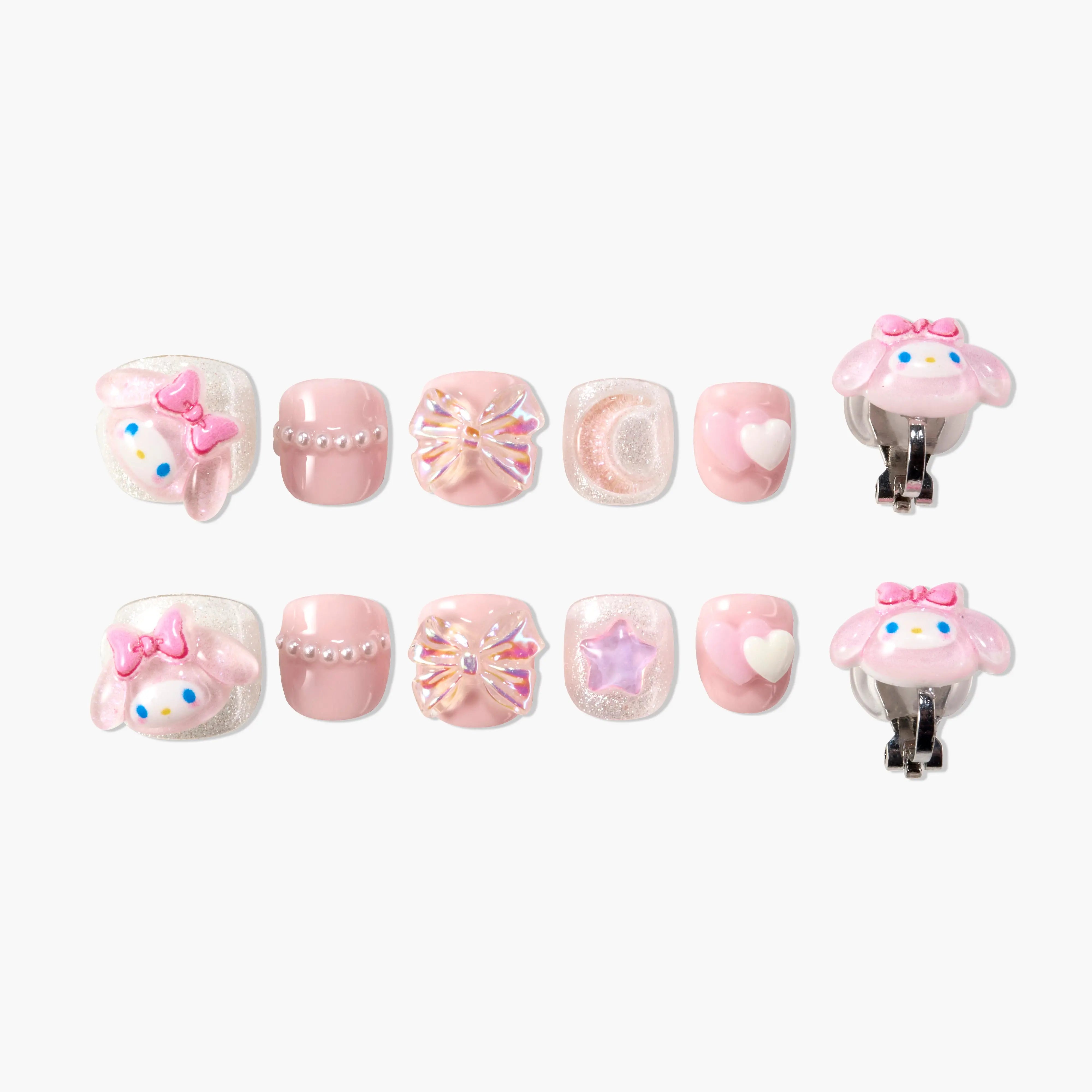 O conjunto artesanal infantil Emily’s Dreamy Bunny Heart Kit inclui unhas postiças rosa pastel e brincos de coelho combinando. As unhas apresentam uma base rosa cintilante decorada com coelhinhos 3D, correntes de pérolas, laços, estrelas de cristal e corações para um visual mágico e doce. Combinado com brincos de coelho, este conjunto completa um estilo divertido e adorável. Cada peça é cuidadosamente feita à mão para um ajuste seguro e reutilizável — perfeito para festas infantis, aniversários, presentes ou diversão diária.
