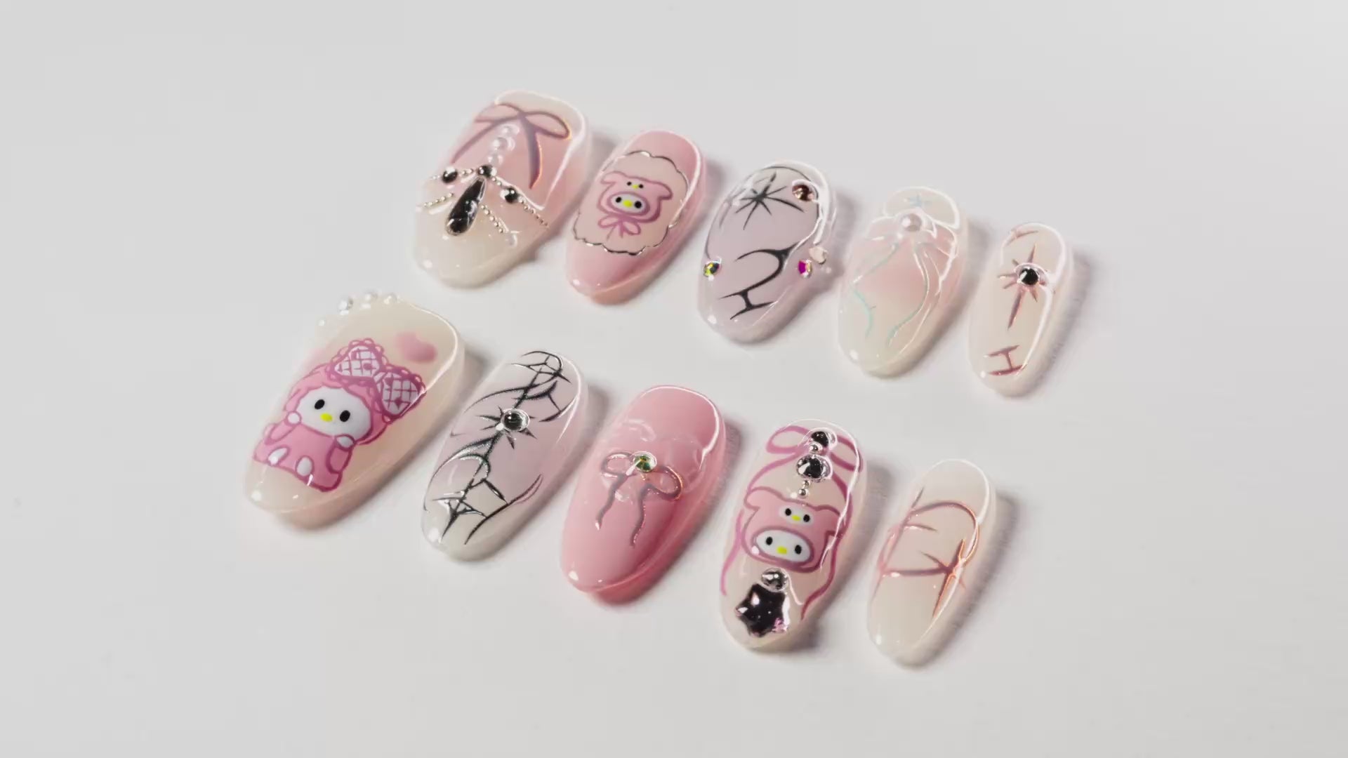 Série de Unhas Dreamy Sweetheart combina rosas suaves com designs intrincados, apresentando adoráveis padrões de ursinhos e elegantes decorações de laços que evocam uma sensação de inocência e romance. Cada design de unha conta uma pequena história encantadora, equilibrando perfeitamente a fofura e a elegância. As joias delicadas e os adornos em linha adicionam um toque elegante e glamoroso, exibindo o estilo doce perfeito.