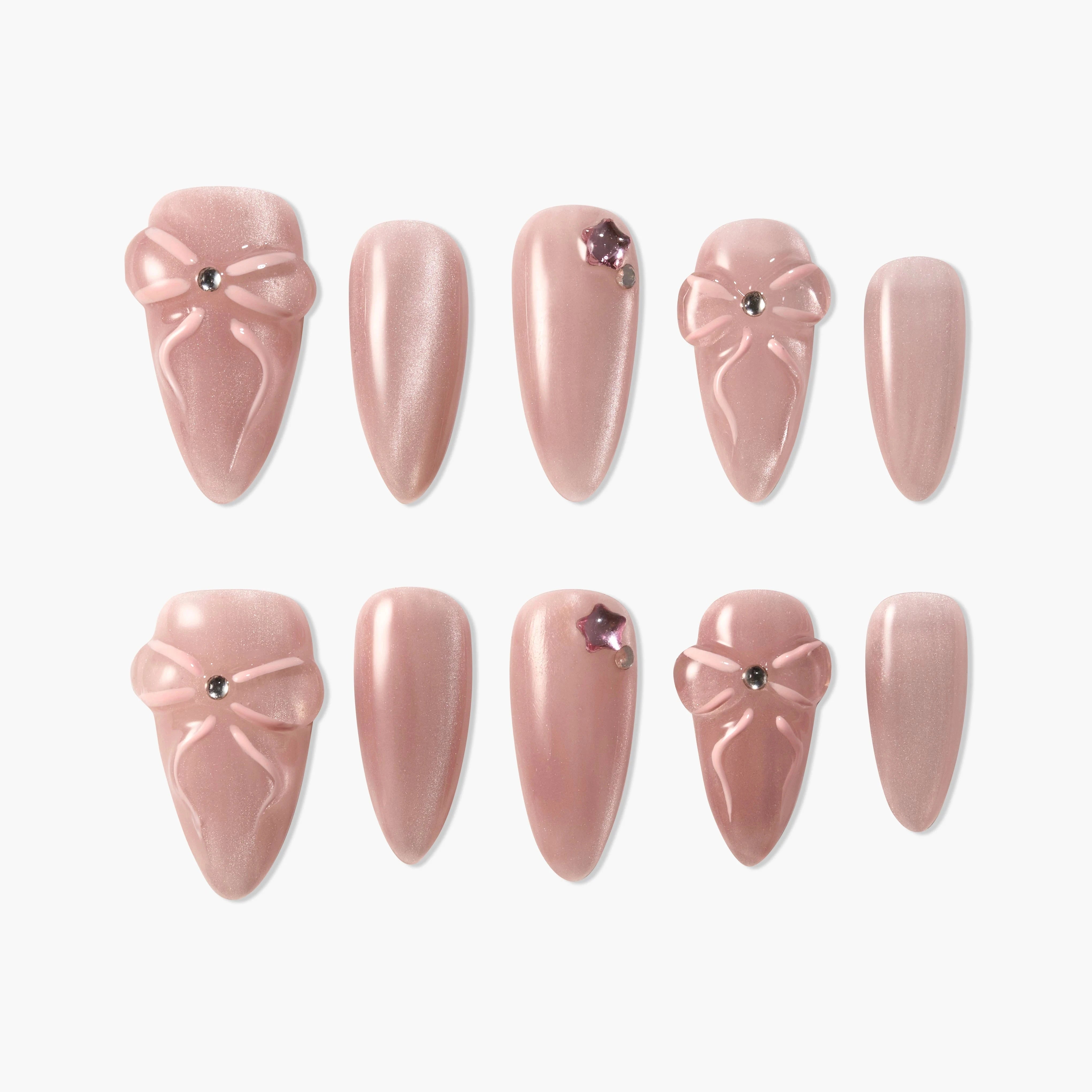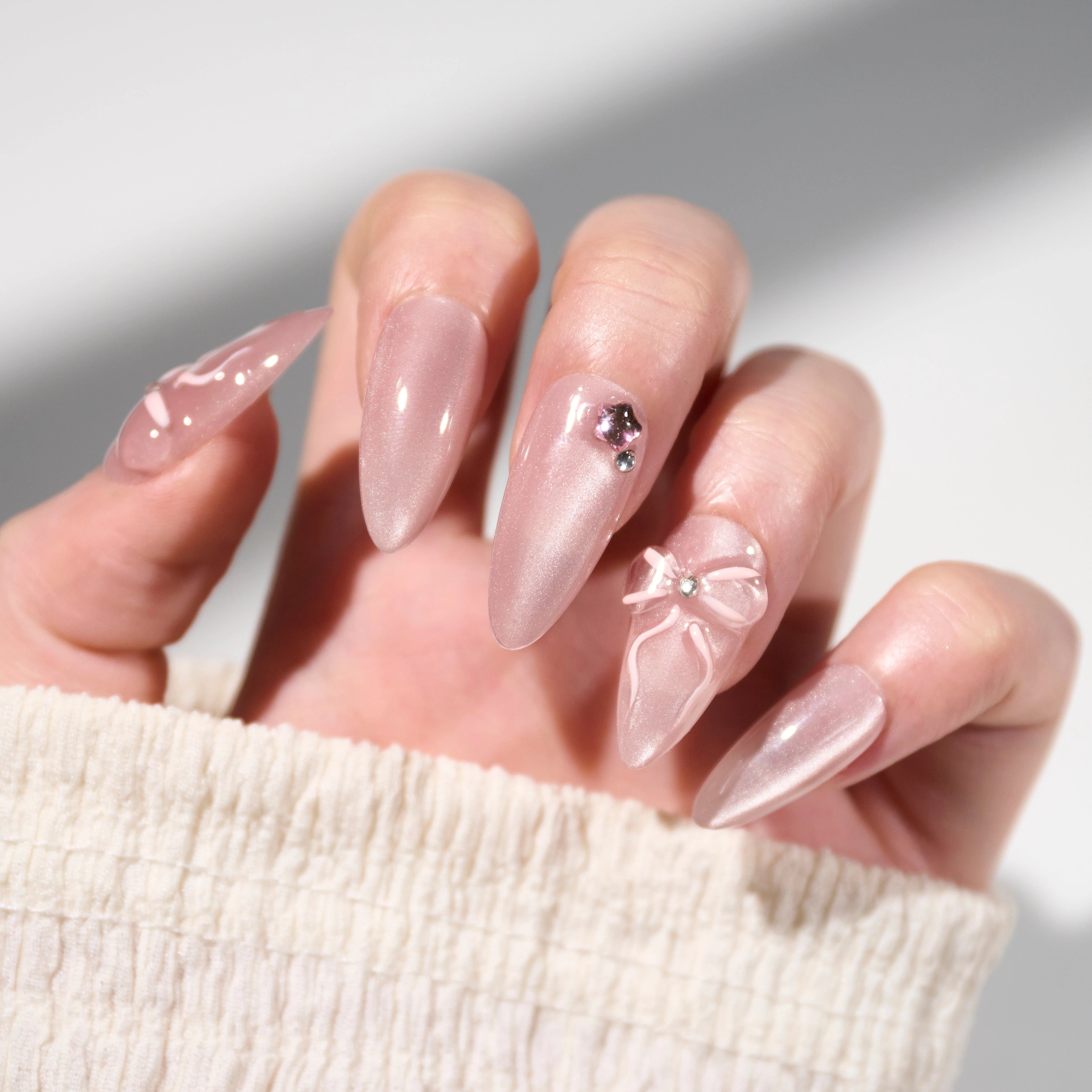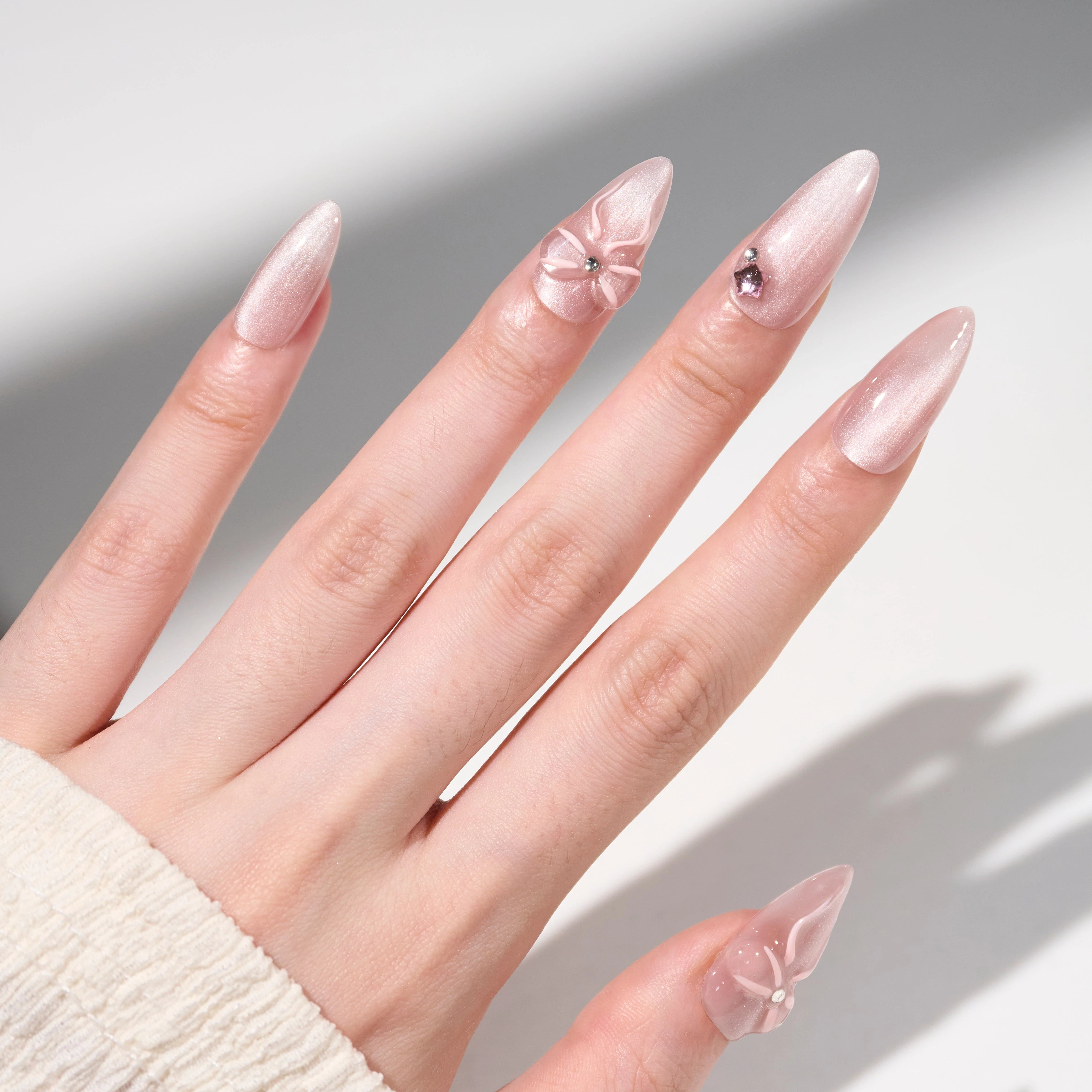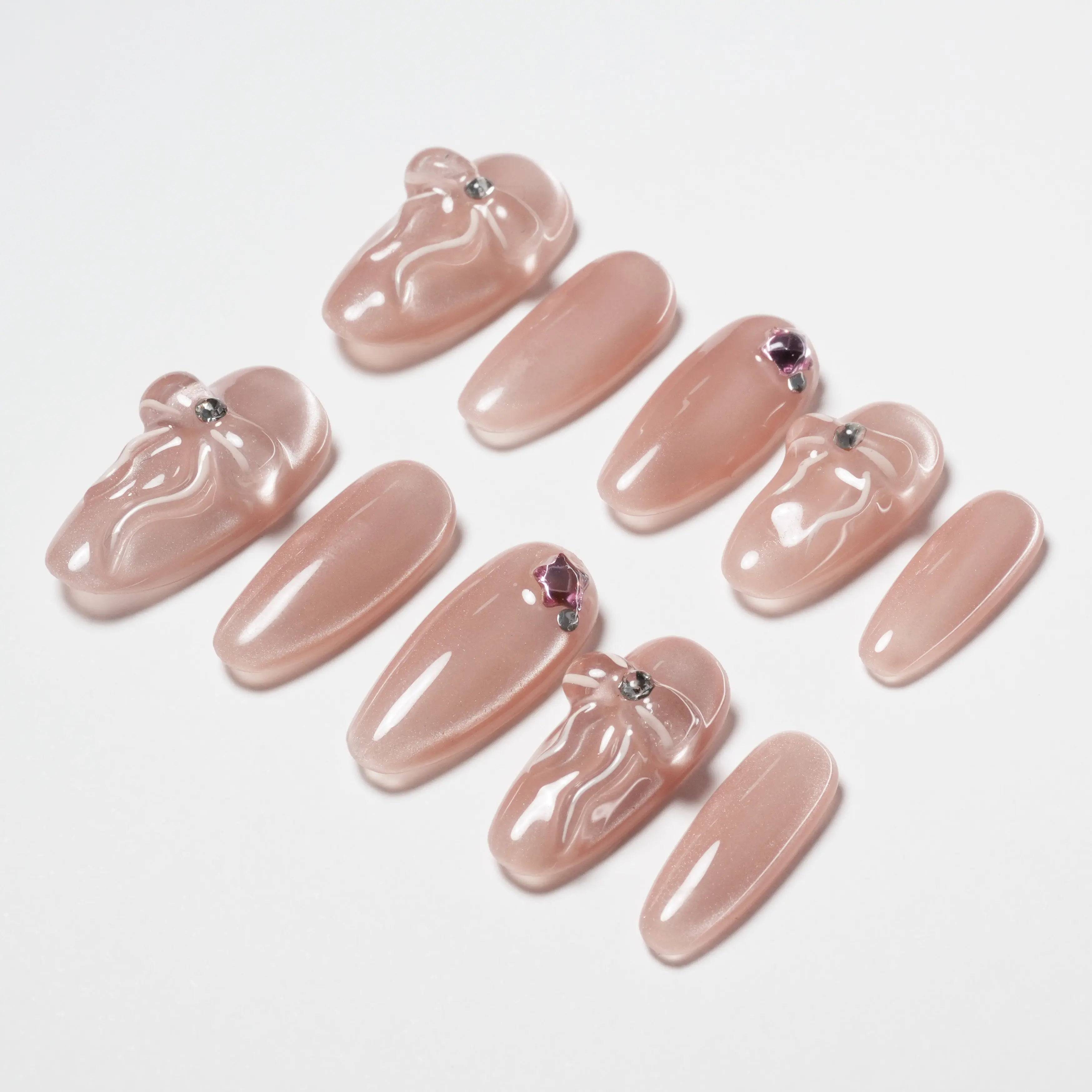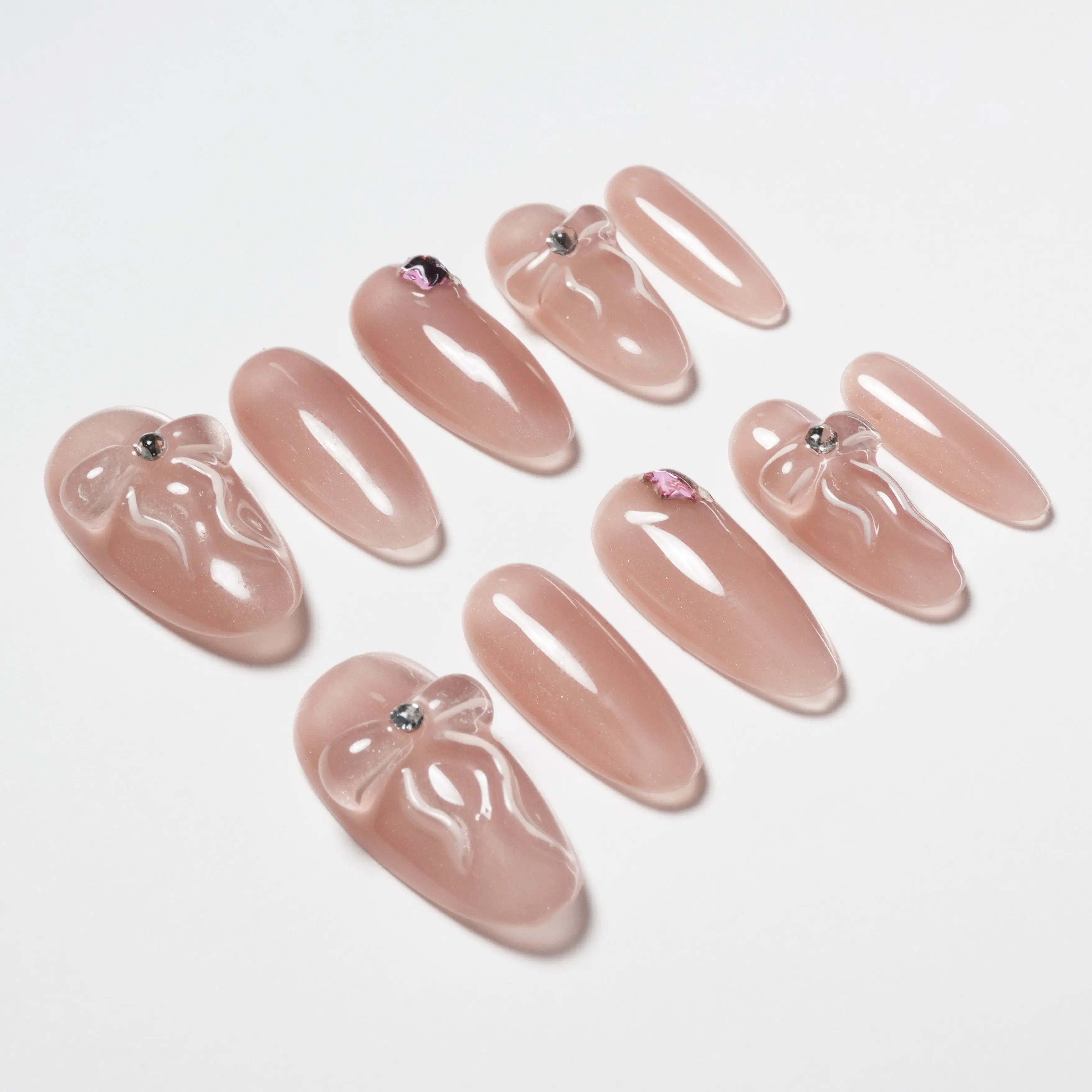 As unhas postiças "Glowing Dance" apresentam uma base nude suave, adornada com cristais requintados e desenhos fluidos e elegantes, exibindo uma aura romântica e delicada. O design fluido e os detalhes cintilantes de cristal em cada unha fazem com que as pontas dos seus dedos brilhem como luzes a dançar, destacando tanto a elegância como o movimento. Simples, mas sofisticado, perfeito para qualquer ocasião, enfatizando o charme intricado e a graça feminina.
