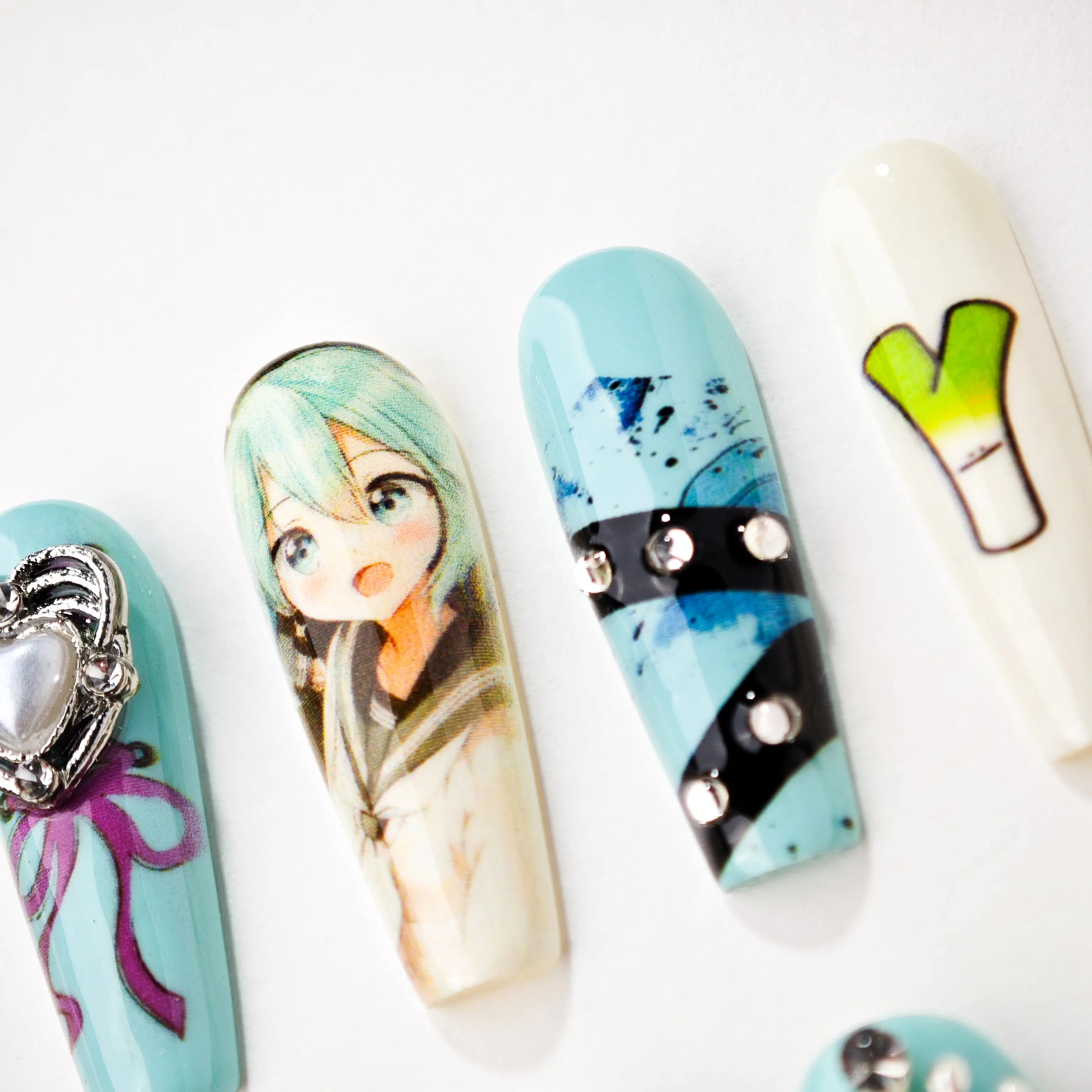 A série Fantasy artesanal Emily’s Hatsune Miku captura o charme icónico da Miku com uma paleta verde-menta e branca, acentuada por diamantes roxos, motivos de coração e arte delicada da personagem. Apresentando a escrita japonesa “ミク”, coroa e adornos de coração de cristal, este conjunto incorpora uma estética kawaii de sonho. Perfeito para fãs de anime, concertos ou looks diários divertidos.