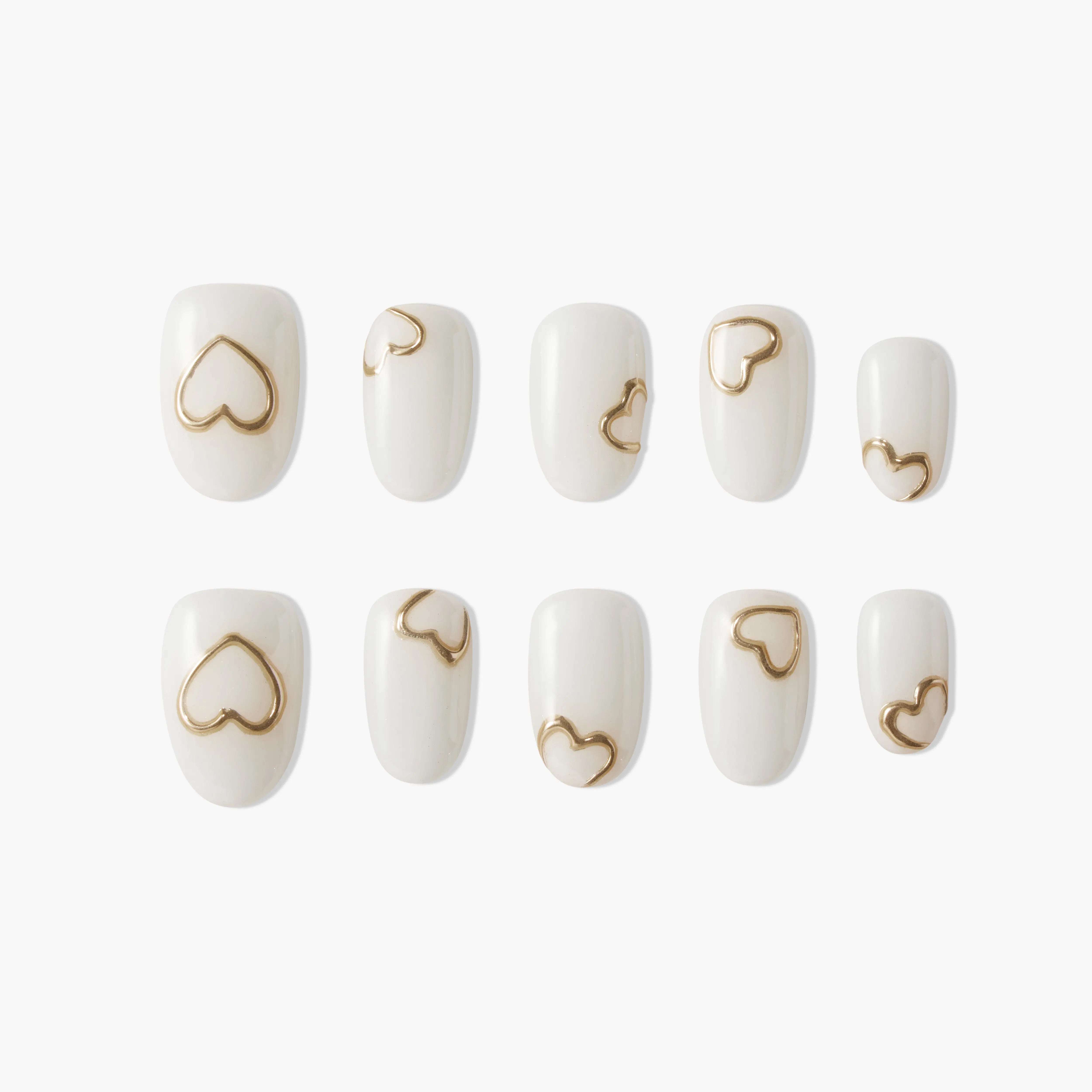Coração da Elegância unhas postiças série apresenta branco clássico com linhas douradas em forma de coração, simples mas elegante, exalando charme incomparável. Inspirado pelo amor puro e ternura, as linhas douradas em forma de coração delineiam um toque quente e delicado, perfeito para qualquer ocasião, evocando sentimentos de amor e calor.