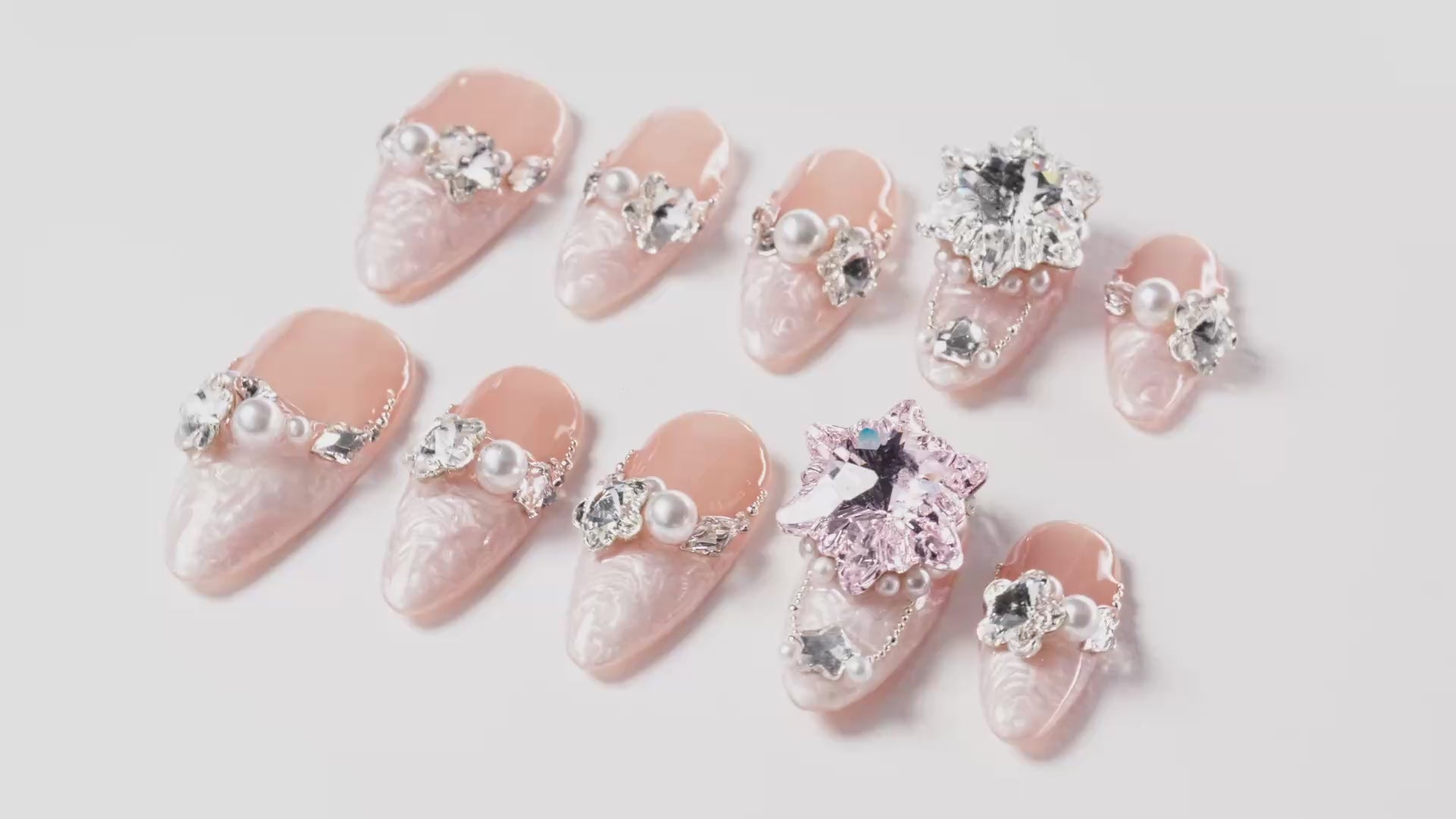 As unhas reutilizáveis Lux Crystal Flower combinam belos desenhos de flores de cristal com detalhes em pérola, criando uma mistura perfeita de elegância e luxo. Cada unha é adornada com elementos de joalharia requintados, ideal para ocasiões formais ou especiais. Reutilizáveis para maior conveniência, adicionando charme infinito às suas pontas dos dedos.
