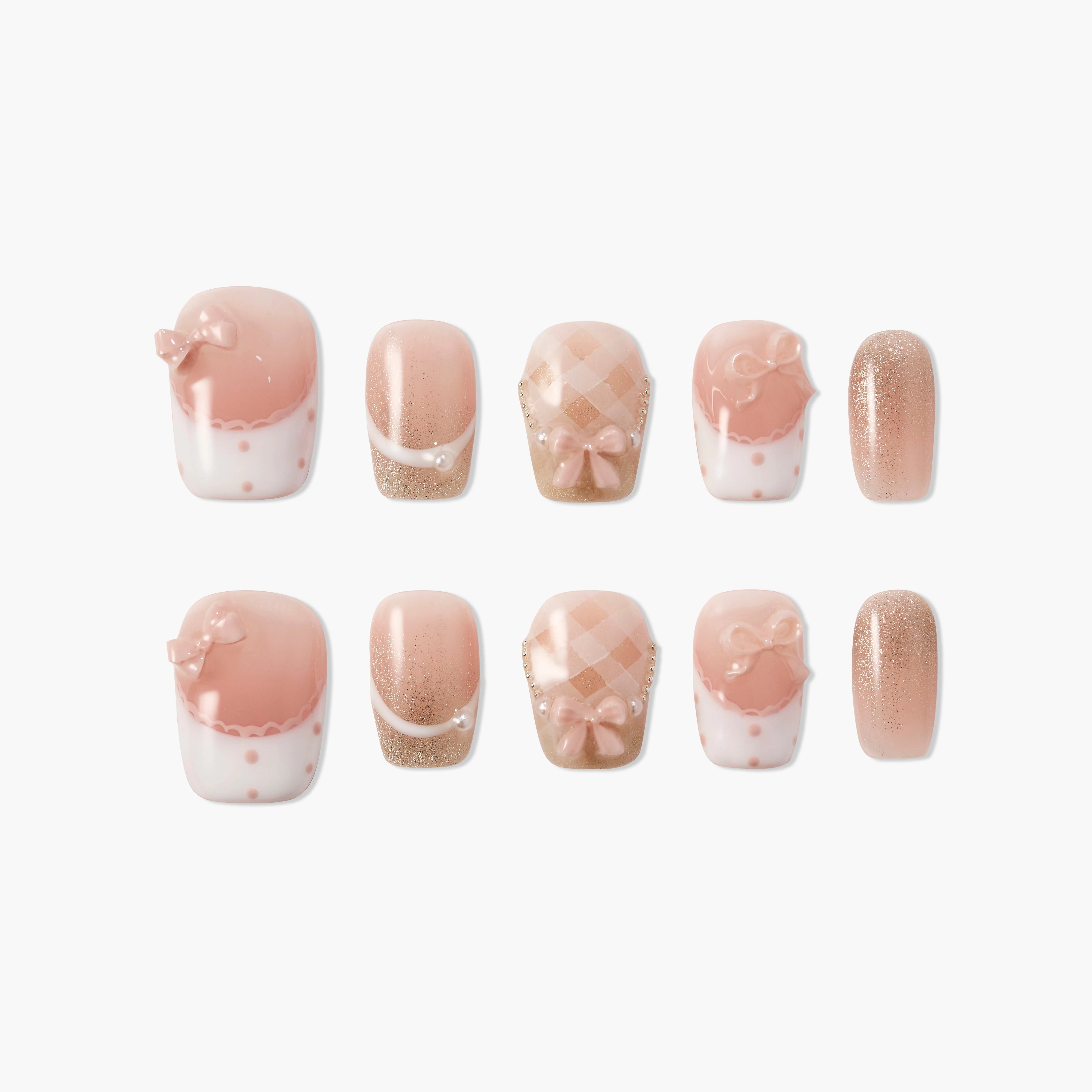 Uma chávena de aconchego ao seu alcance — Milk Tea Bow combina tons cremosos bege com fitas cor-de-rosa suaves, pérolas e um brilho subtil. Cada conjunto é feito à mão com detalhes delicados: textura aos quadrados, bordas pontilhadas e um acabamento acetinado que transmite uma elegância natural. Perfeito para dias acolhedores, encontros doces ou para quem adora um toque suave e feminino.