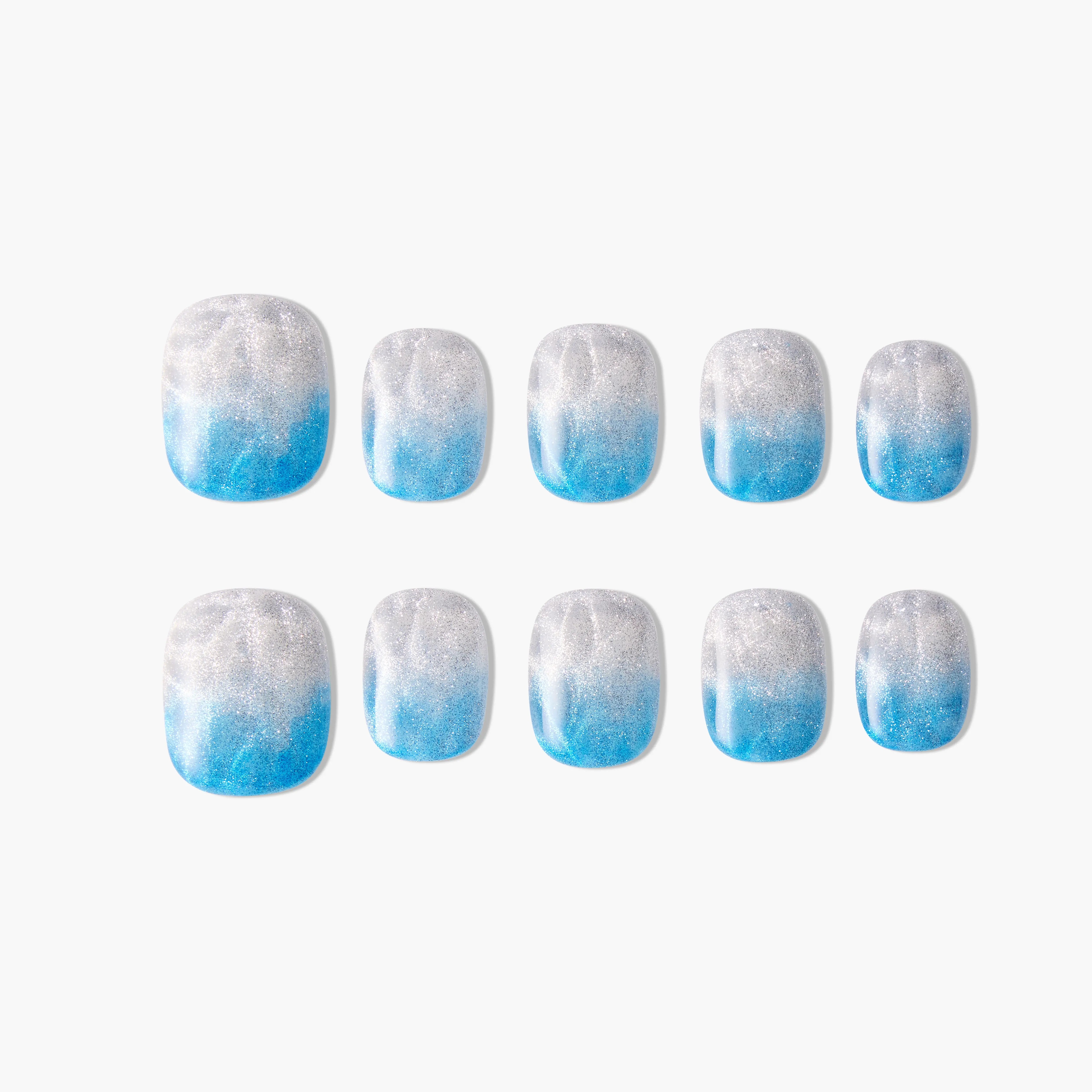 Estas unhas refrescantes apresentam um belo gradiente de branco suave e azul, assemelhando-se à mistura suave das ondas do oceano. O acabamento cintilante adiciona um toque de brilho, perfeito para quem ama a vibração calma e pacífica do mar.