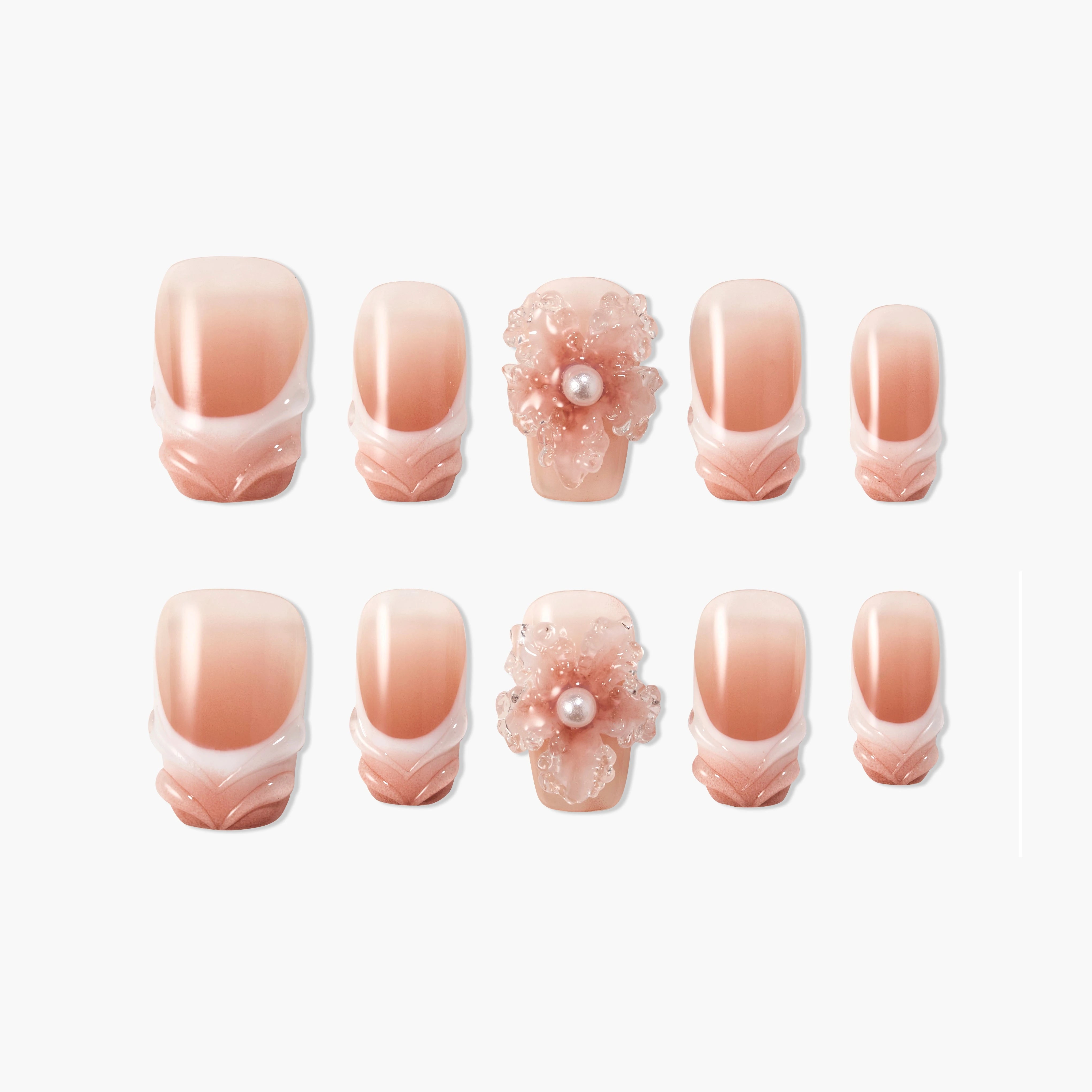 Suave e gracioso, o "Peach Blossom Glow" da Emily captura a elegância das flores da primavera num gradiente nude-rosa. Cada peça apresenta pétalas esculpidas à mão com um centro de pérola, simbolizando pureza e feminilidade. Perfeito para casamentos, momentos românticos ou para adicionar um toque de charme refinado ao seu visual diário.
