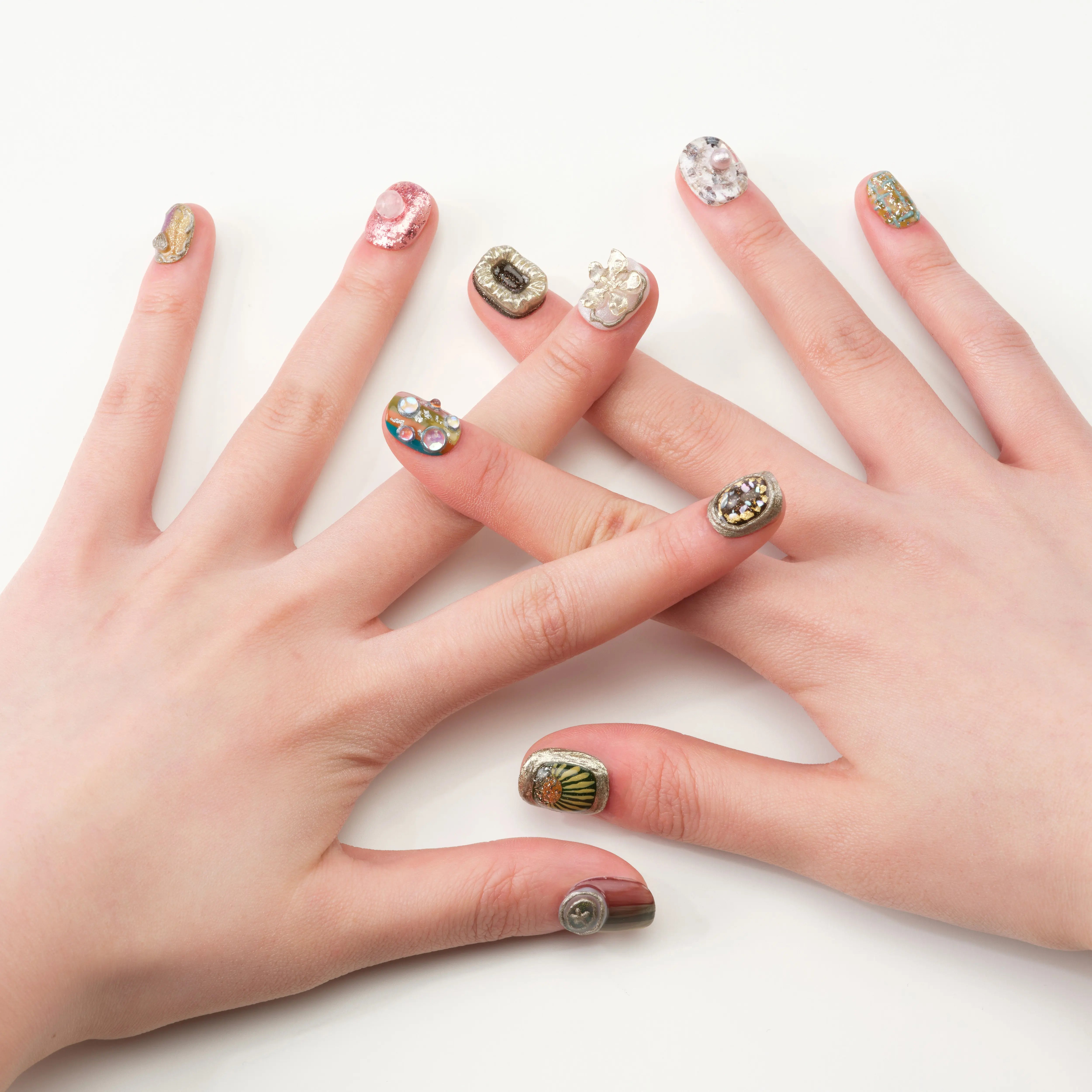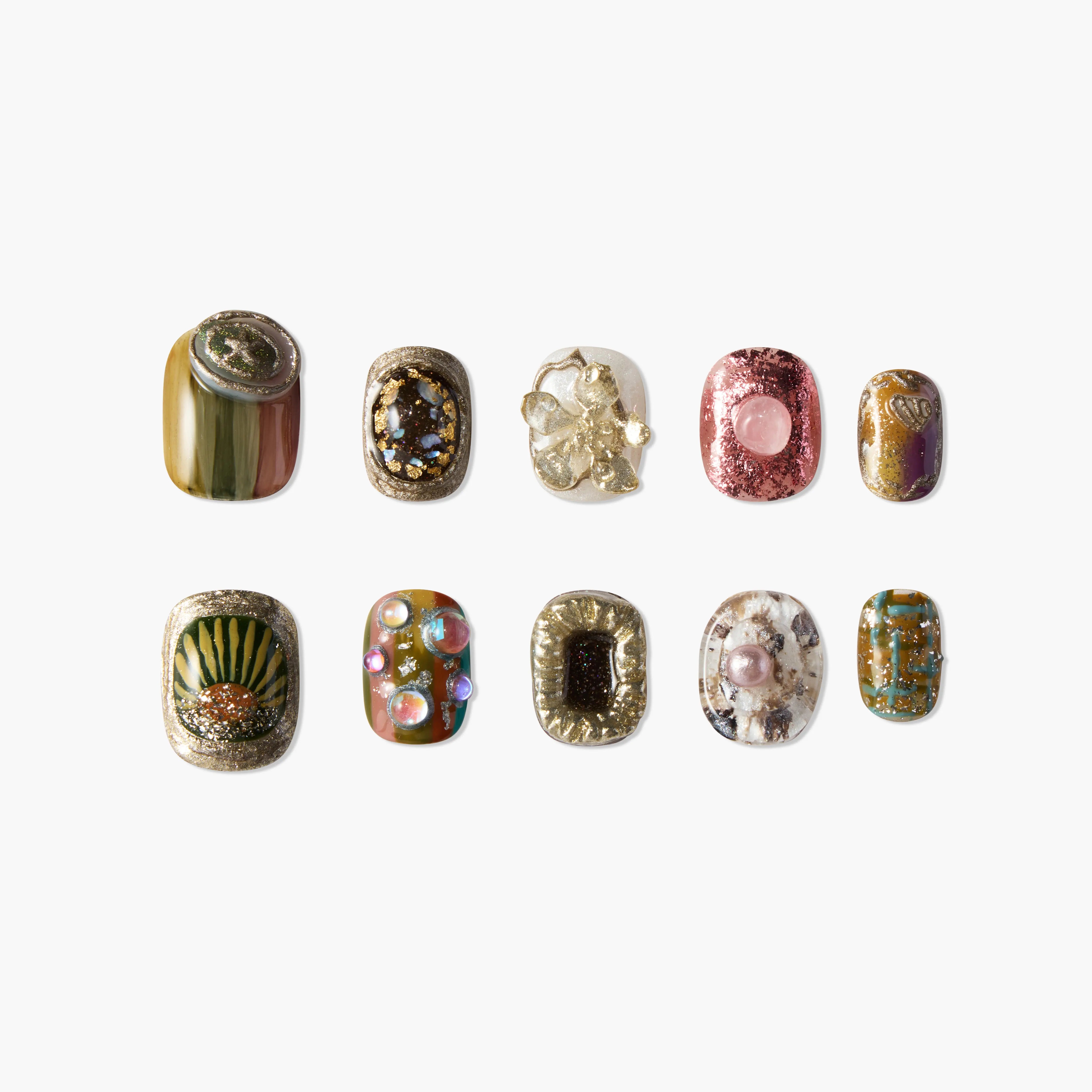Radiant Relics apresenta uma mistura luxuosa de texturas, cores e adornos inspirados em tesouros antigos e património artístico. Desde motivos florais dourados a pedras preciosas deslumbrantes e padrões arrojados, cada design cria uma expressão incomparável de opulência, perfeita para causar impacto.