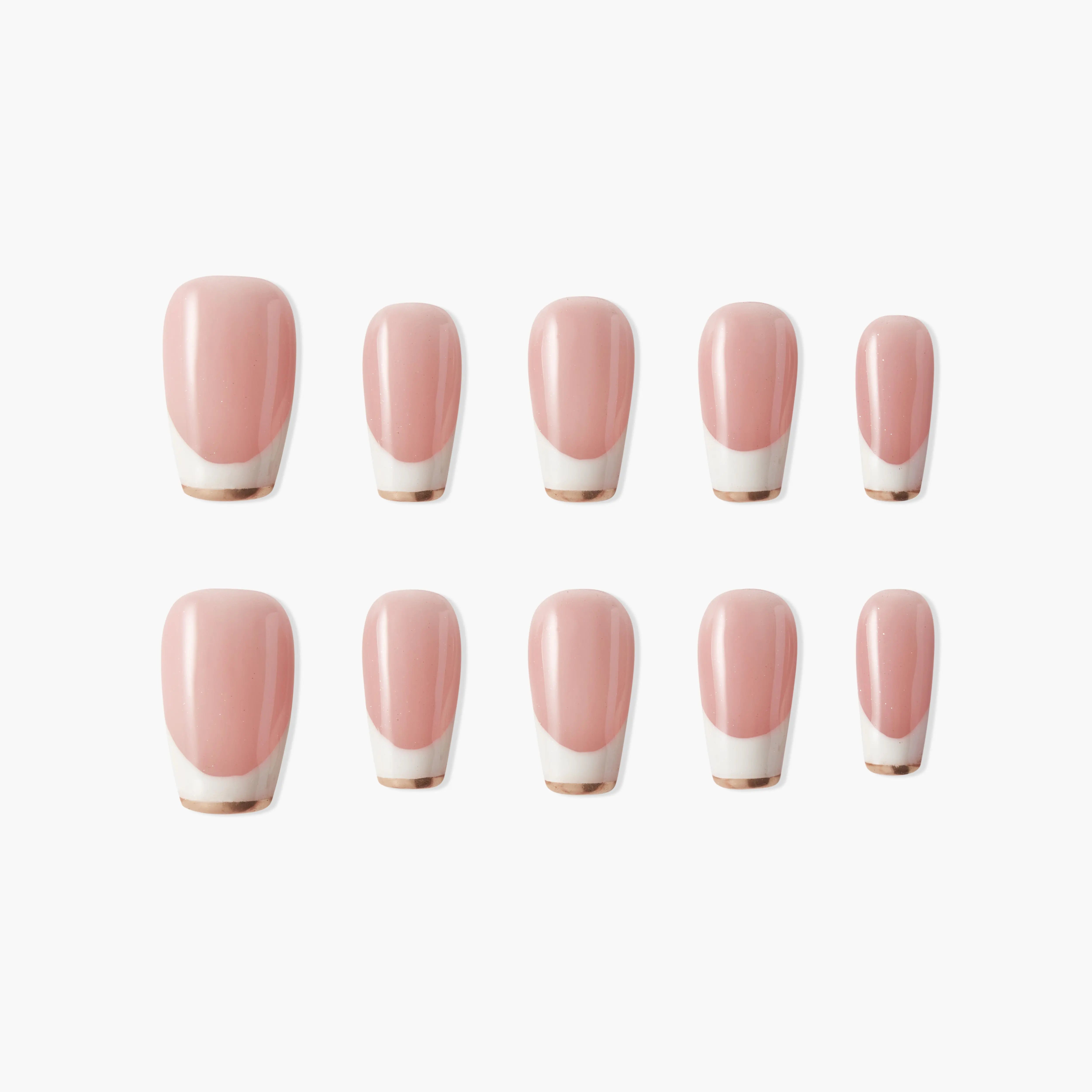 O design das Unhas Postiças Rosy Elegance centra-se nos suaves tons de rosa rosado, complementados pelo clássico estilo de manicure francesa, exibindo uma combinação perfeita de refinamento e elegância. As pontas brancas limpas francesas em cada unha combinam lindamente com o suave gradiente rosa, criando um visual fresco e cativante. Este design é ideal para mulheres que adoram simplicidade e elegância, perfeito para qualquer ocasião para realçar a sua nobreza e graça.
